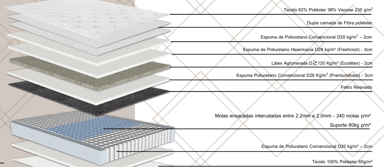 Por ser uma espuma de alta densidade, ela ajuda a oferecer sustentação mais uniforme, reduz as chances de deformação e contribui para aumentar a vida útil do produto. Ou seja: aqui, sustentabilidade e desempenho caminham juntos.